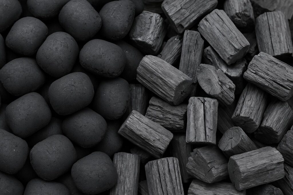 - チャコールブリケット: 火つきが良く、均一に燃える。火おこし用として最適。