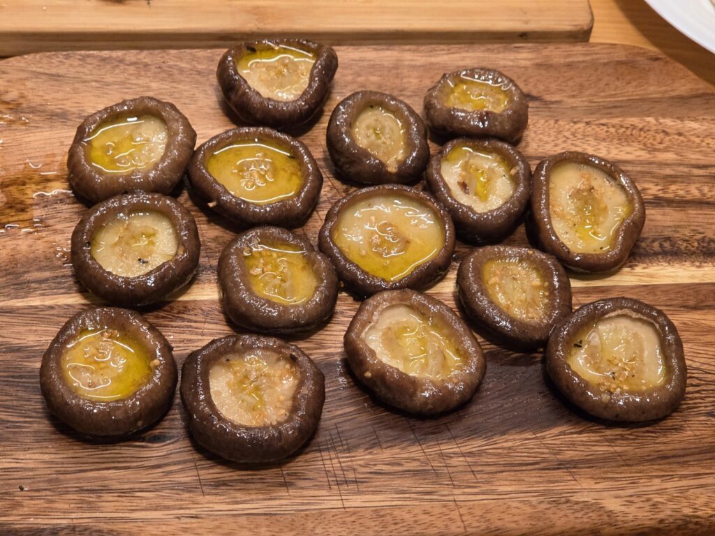 世界一のしいたけ(ガーリック風味):オリーブオイルとにんにくの香りが立ち上がる瞬間