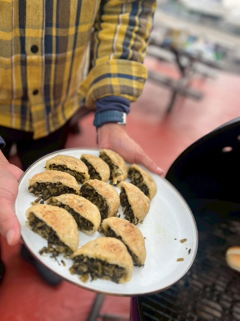 そしてちょっと珍しい長野県産のおやき。炭で焼くと外がパリッ、中はもちっと。「これ、意外とアリ!」という声があちこちから聞こえました。