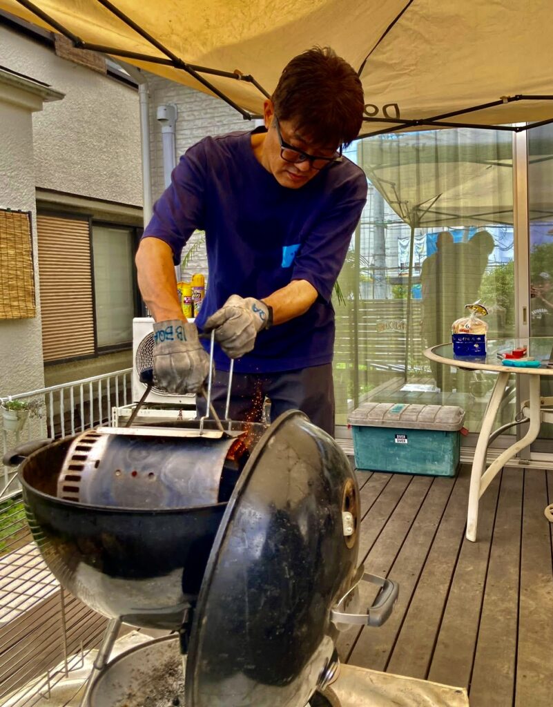 普段は仕事の合間に新しいBBQレシピを研究したり、道具の使い比べをしたりしています。